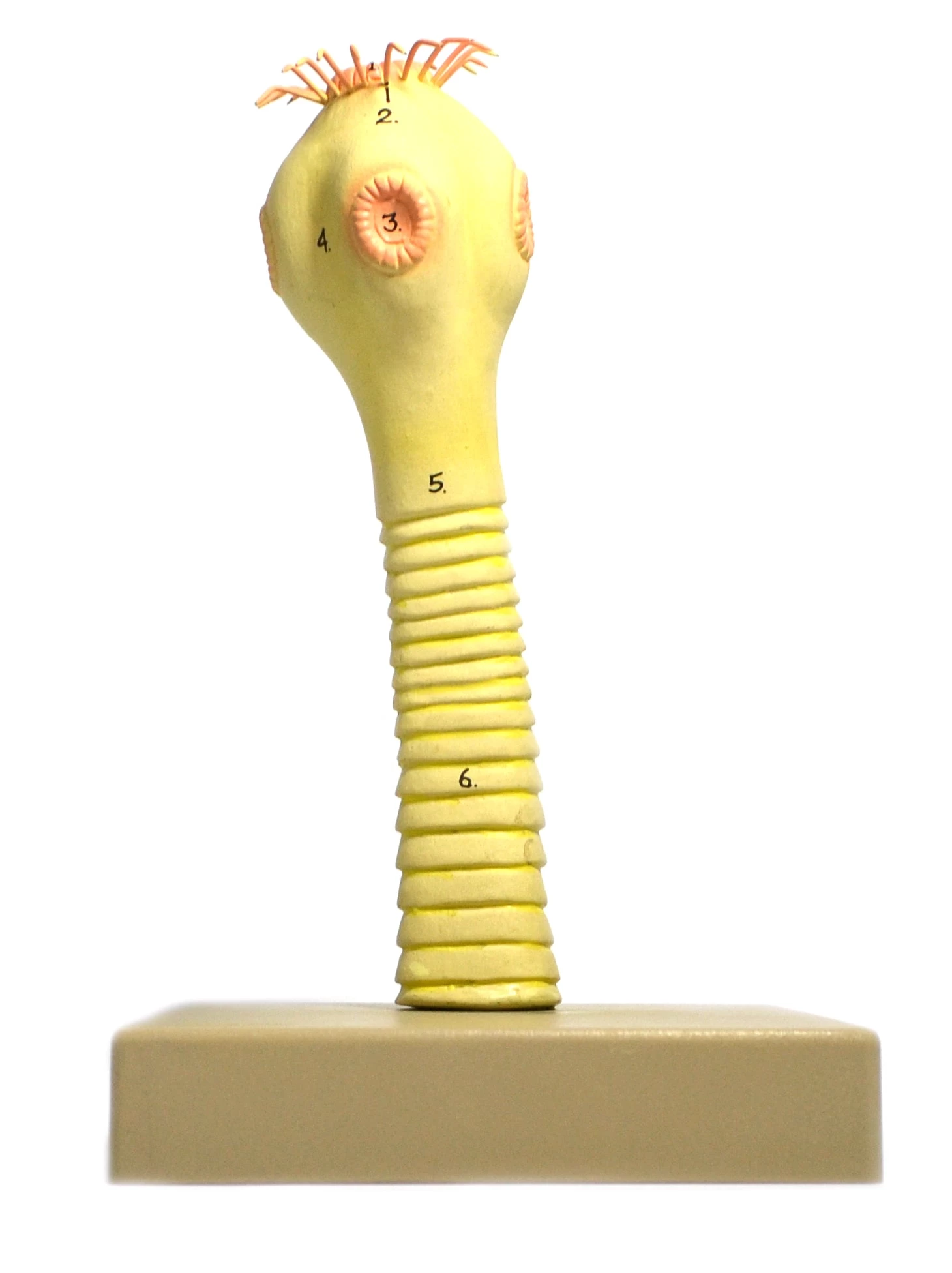 This highly detailed, enlarged model of the Pork Tapeworm head is approximately 9 inches tall, mounted on a base and numbered for easy use with the included English keycard, and makes an excellent visual learning tool in any classroom.