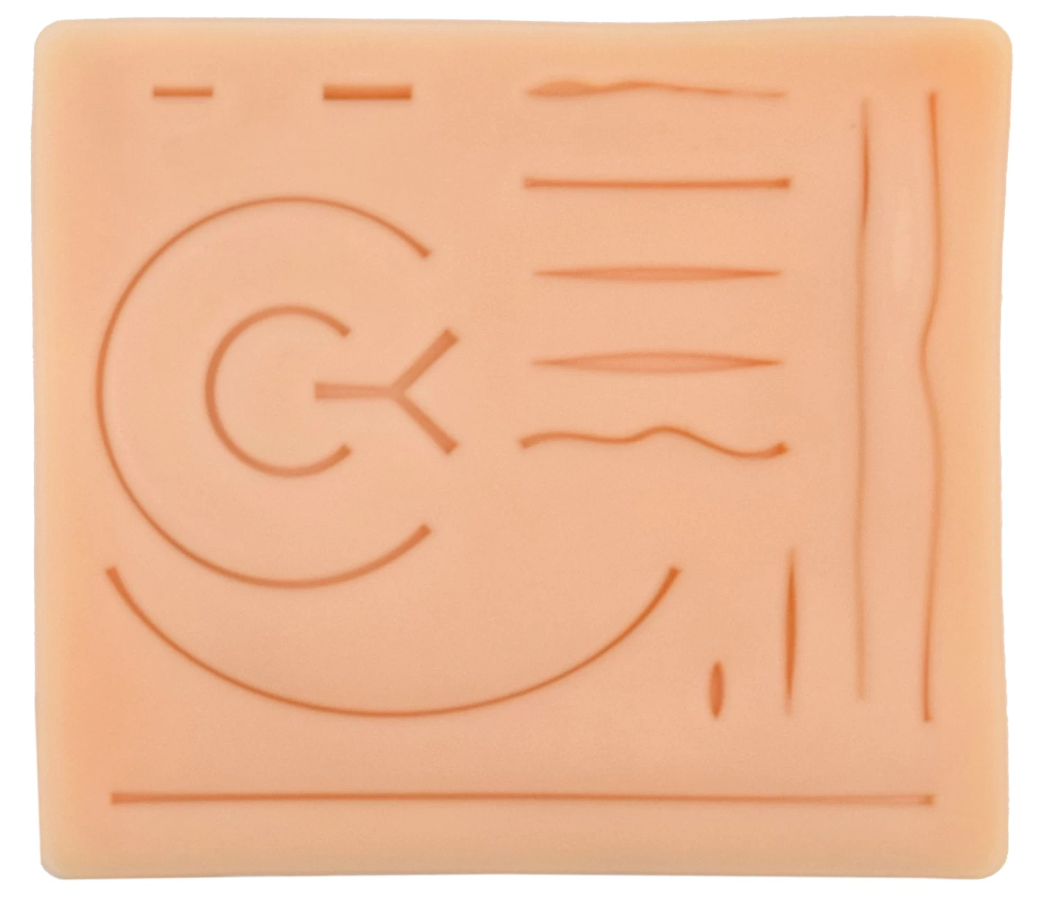 - Suture pad measures 6.5″ wide, 5.75″ long and 0.5″ thick. Features a realistic texture and a variety of common cuts and lacerations, irregular wounds and Y shaped for corner stitches
