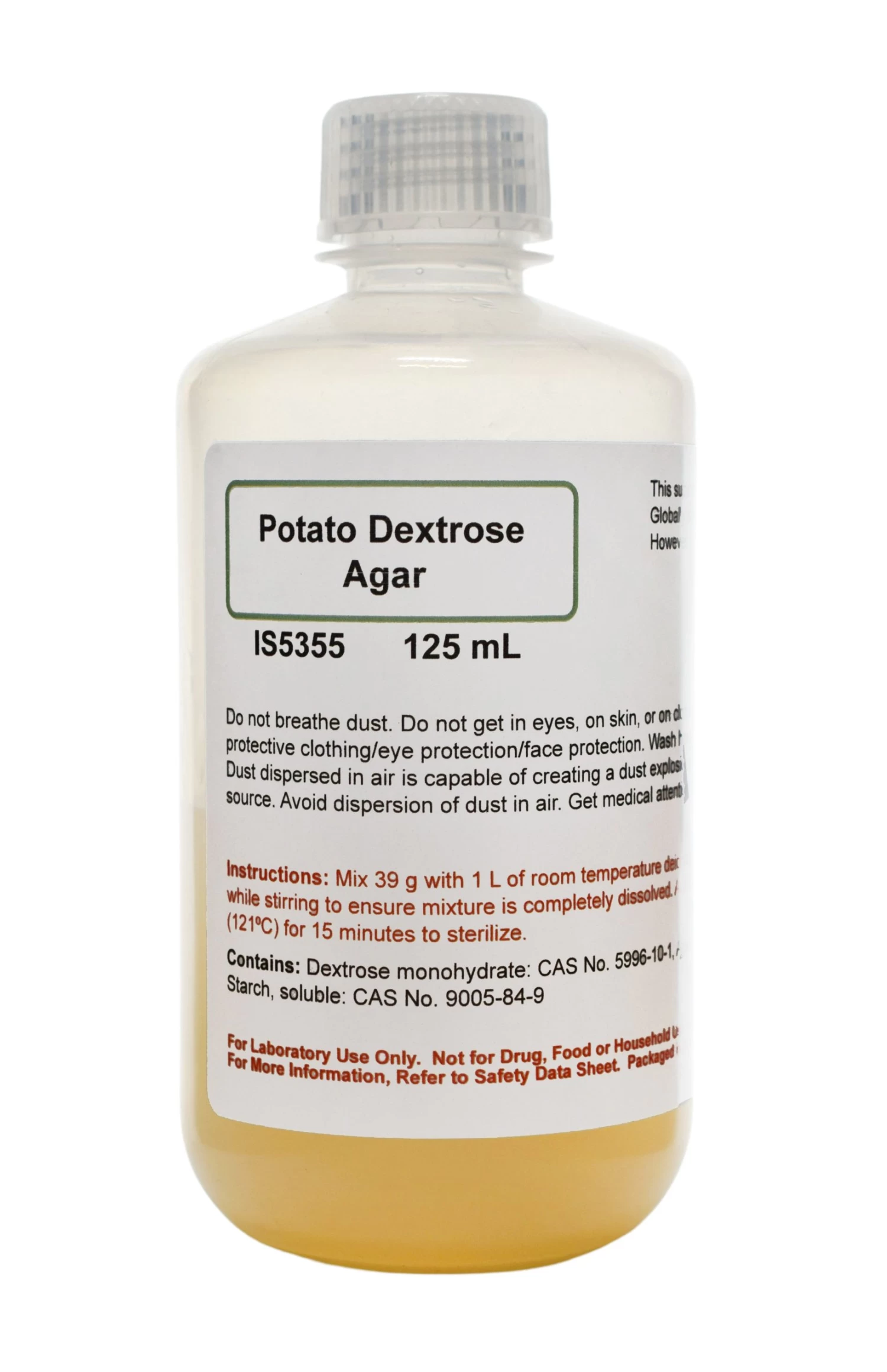 - POURS 6 PLATES || 125mL bottle of Potato Dextrose Agar is sufficient for pouring up to six plates