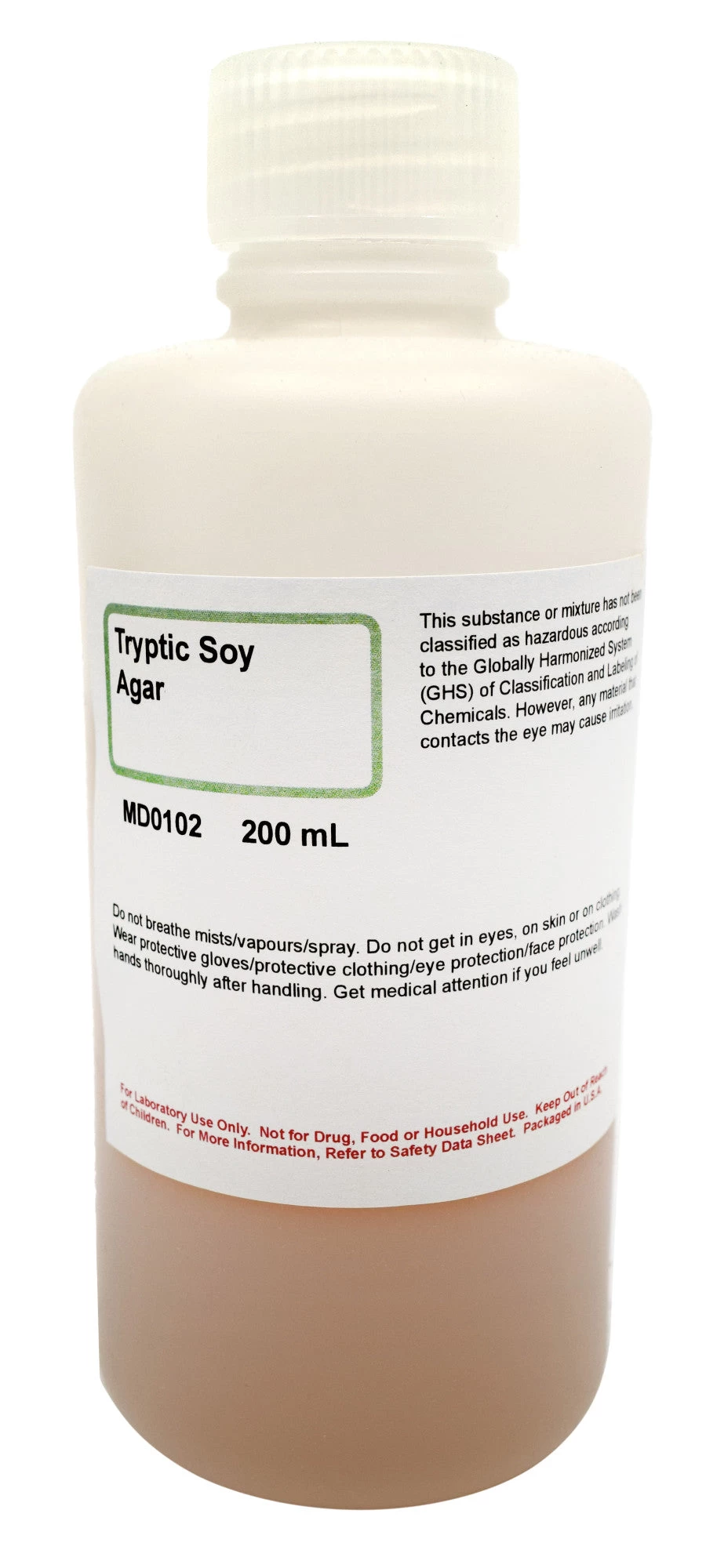 24 x 200 ml of Tryptic Soy Agar (TSA), used to grow a wide variety of non-fastidious and moderately fastidious bacteria. TSA comes premixed in a narrow mouth bottle for mess free pouring and convenient storage. Each bottle makes 16-20 100mm petri dishes. Case comes with an SDS, providing safe handling and storage information.