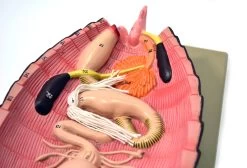 Comparative Tapeworm Model – Developmental Anatomy – Mounted On 18″x20″ Wood Base – Hand Painted-