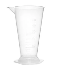12PK Conical Measures, 50ml – Polypropylene – Raised Graduations – Hexagonal Base