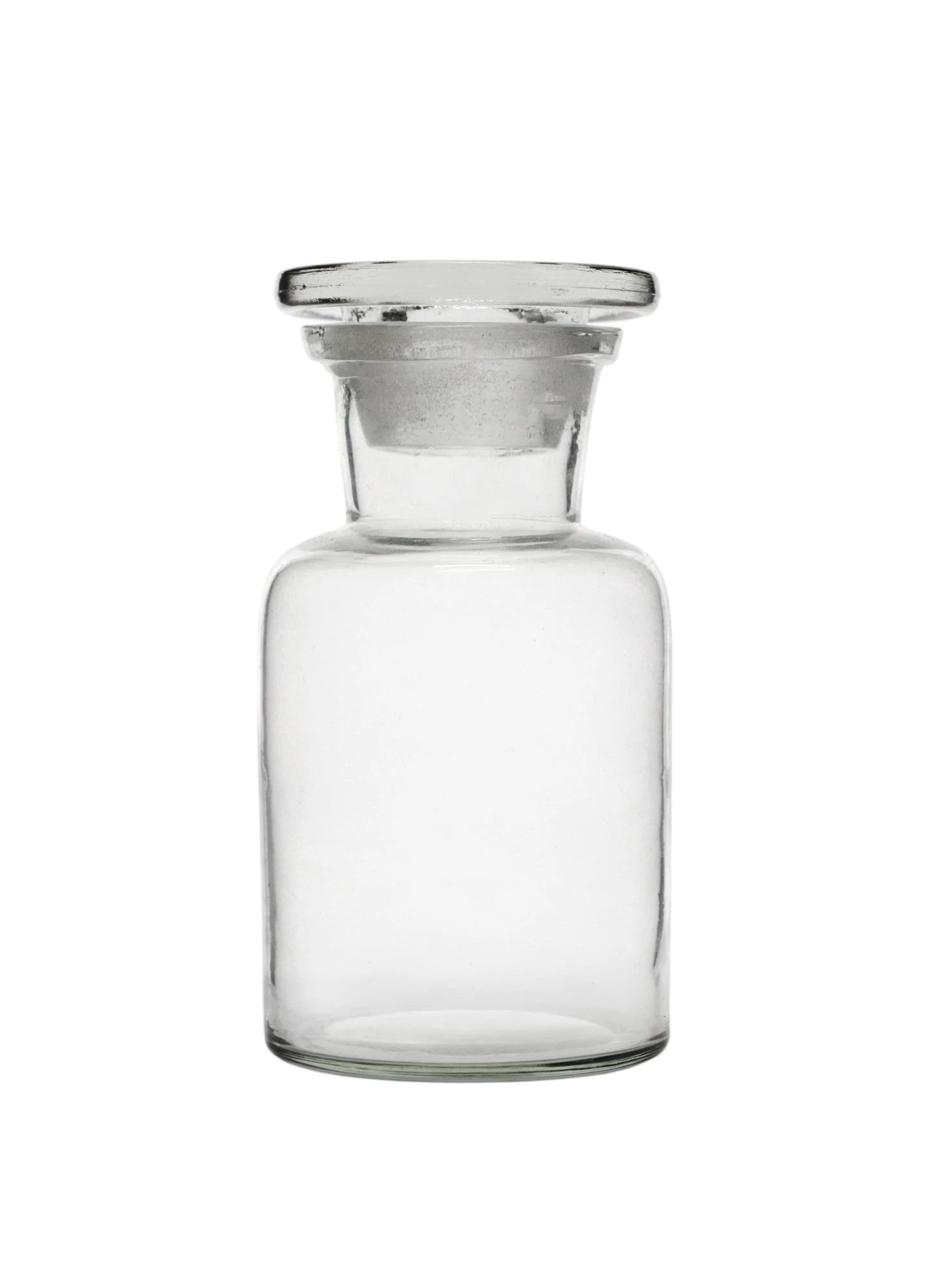 Reagent bottle with 125ml capacity – Intended to contain chemicals in liquid or powder form. Bottle features a wide neck allowing for easy pouring and decanting. Bottle includes a tight fitting glass stopper. Made of high quality transparent soda glass – Built to last and withstand long time use. Designed for use in professional laboratories, but is an ideal choice for science classrooms and household use. Useful for kitchens, crafting, and for storage.