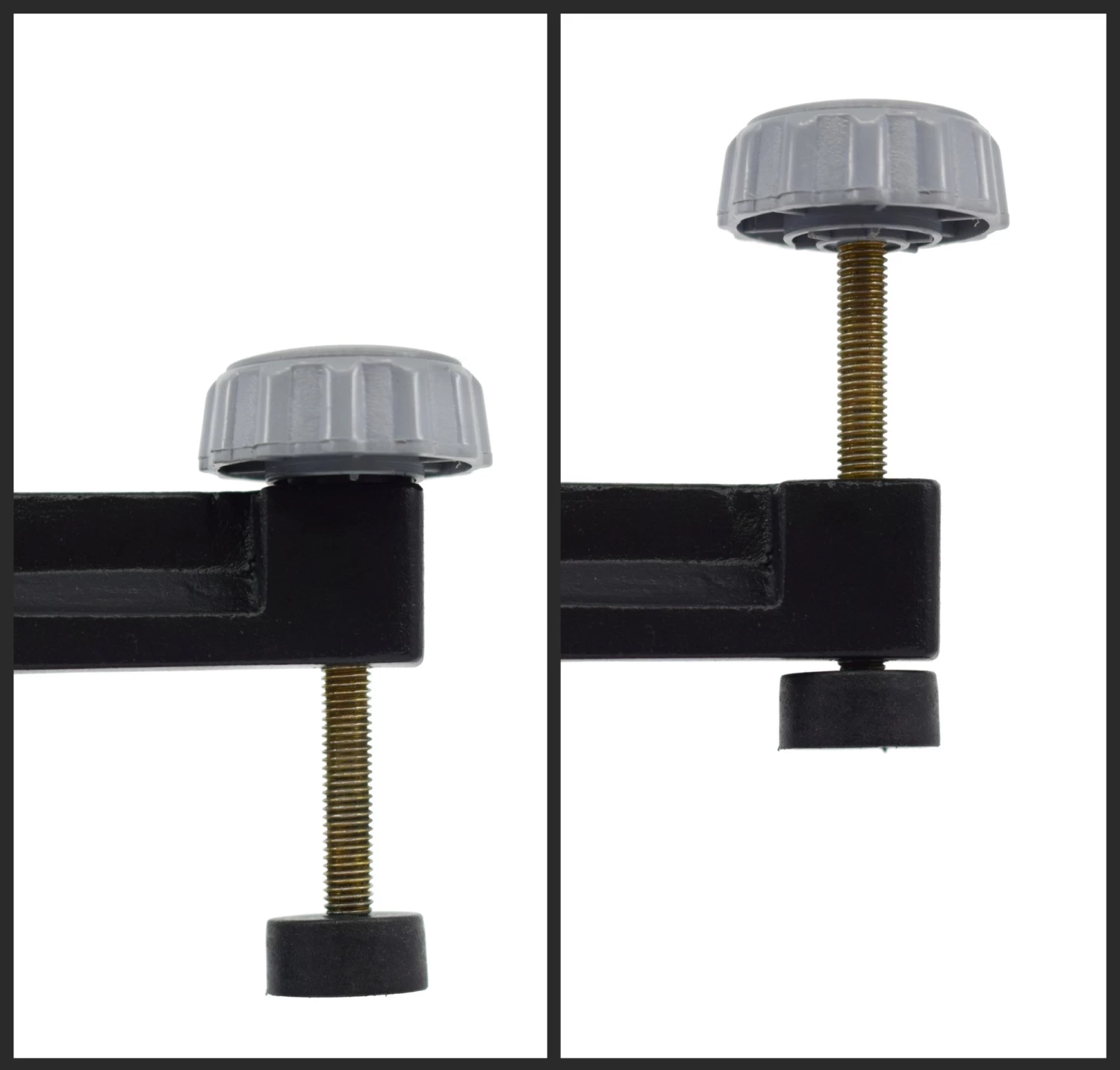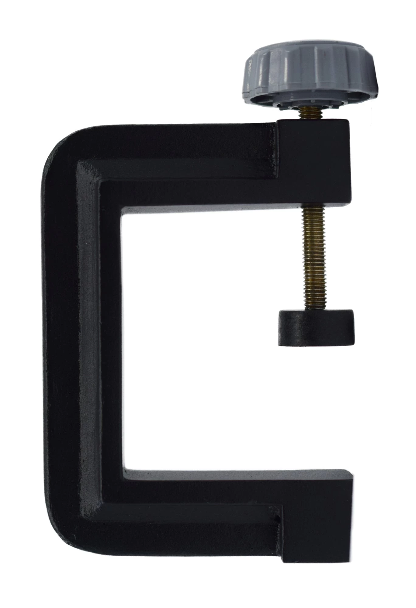 - ADJUSTABLE FIT || Thumbscrew allows for an adjustable grip. The clamp fits table edges and surfaces up to 2.5″ thick