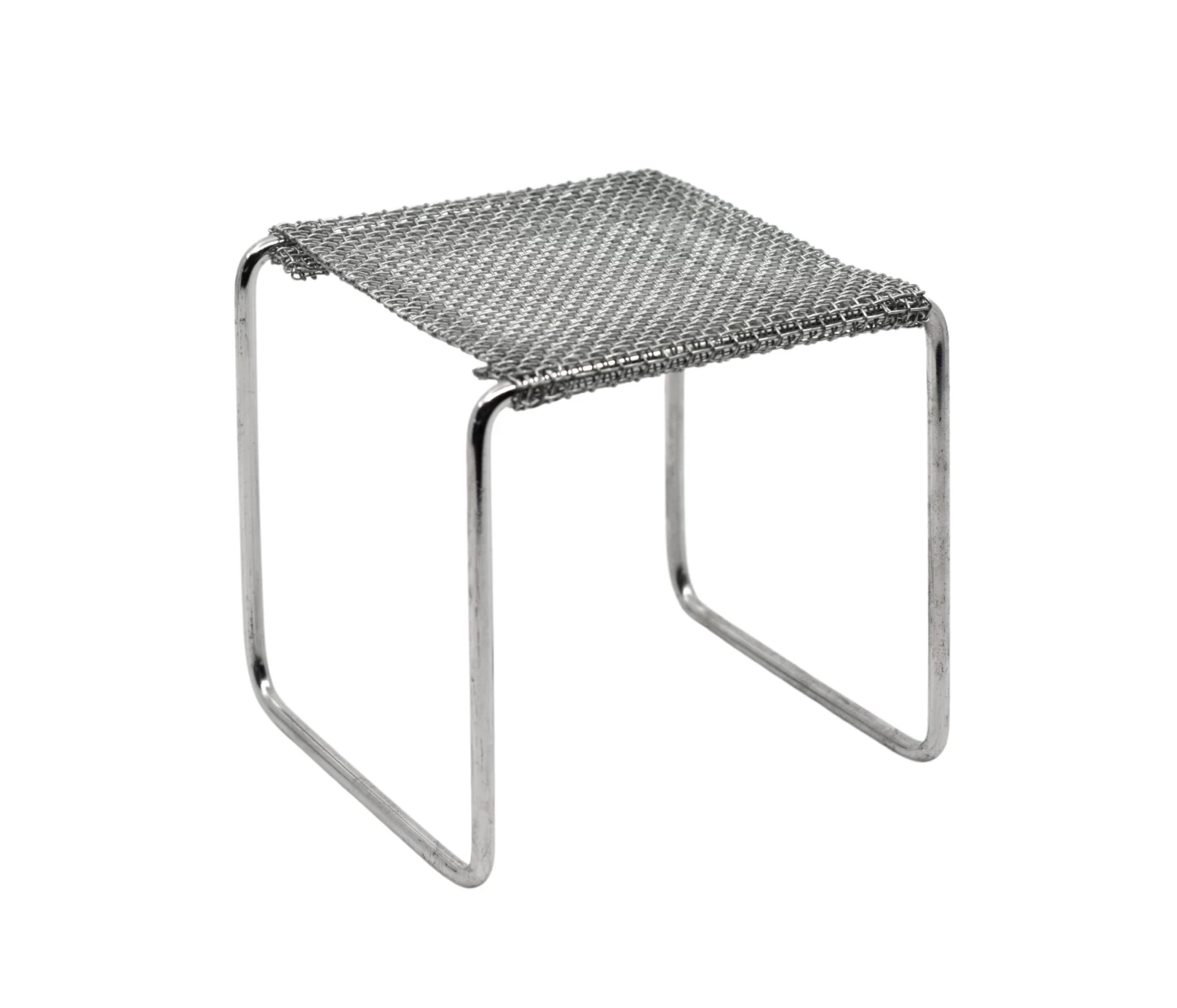 Made of chrome-plated steel wire with a heavy wire gauge top that evenly disperses heat. Designed to accommodate most alcohol burners. Stand measures 3.5″ tall, and is 3.5″ long and 3.5″ wide