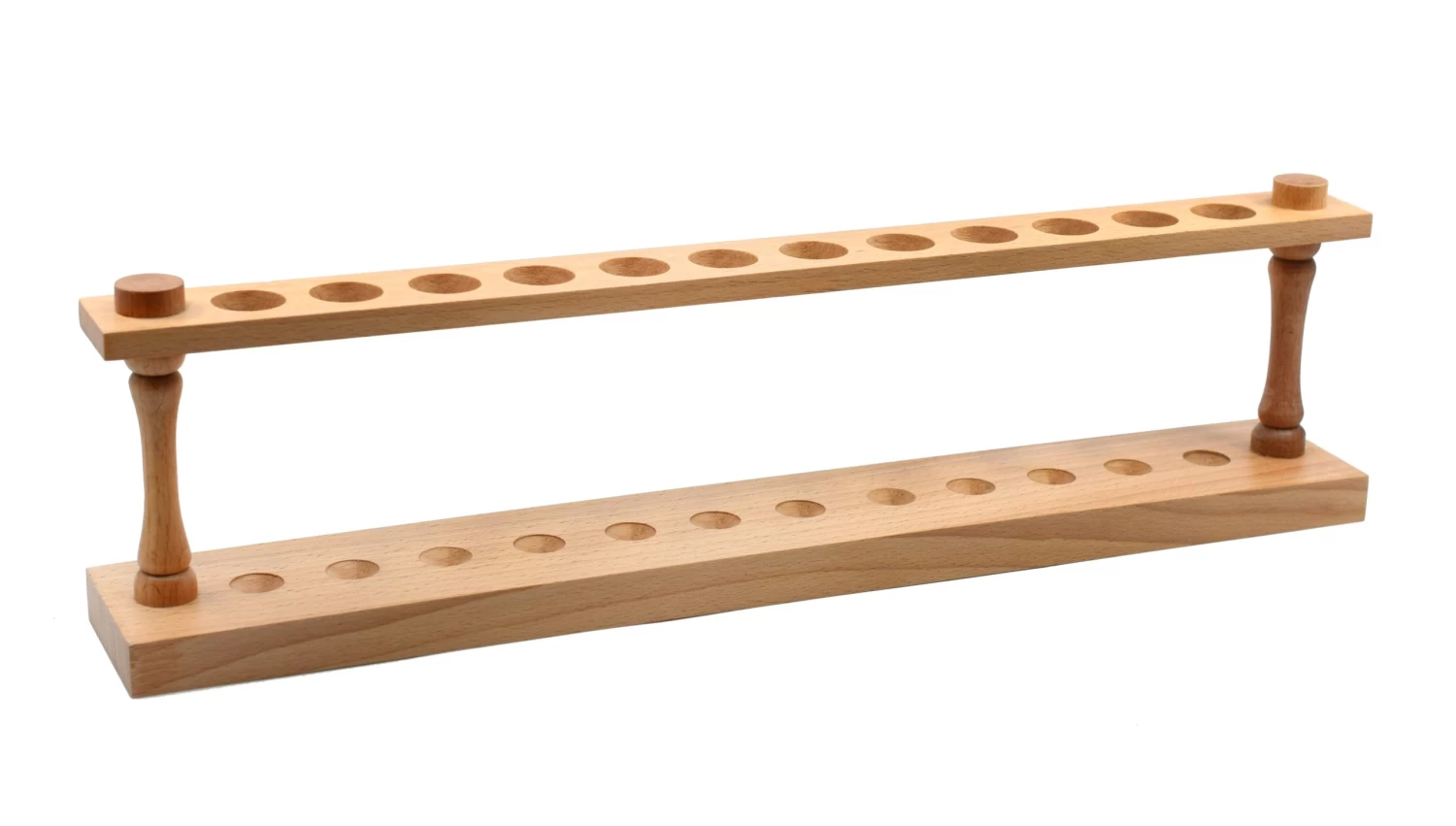 Premium quality wooden rack designed to hold up to 12 test tubes vertically. Polished. Rack features 12 holes measuring 22mm in diameter. Measures 17″ wide, 2.5″ long, and 4.6″ tall. Designed for use in professional laboratories, but is an ideal choice for science classrooms and household use. The design of this rack allows it to be repurposed in a variety of ways – can be used in kitchens to hold spices, tools or other utensils, or for crafting organization. Great for holding paintbrushes, pencils and drying fountain pens.