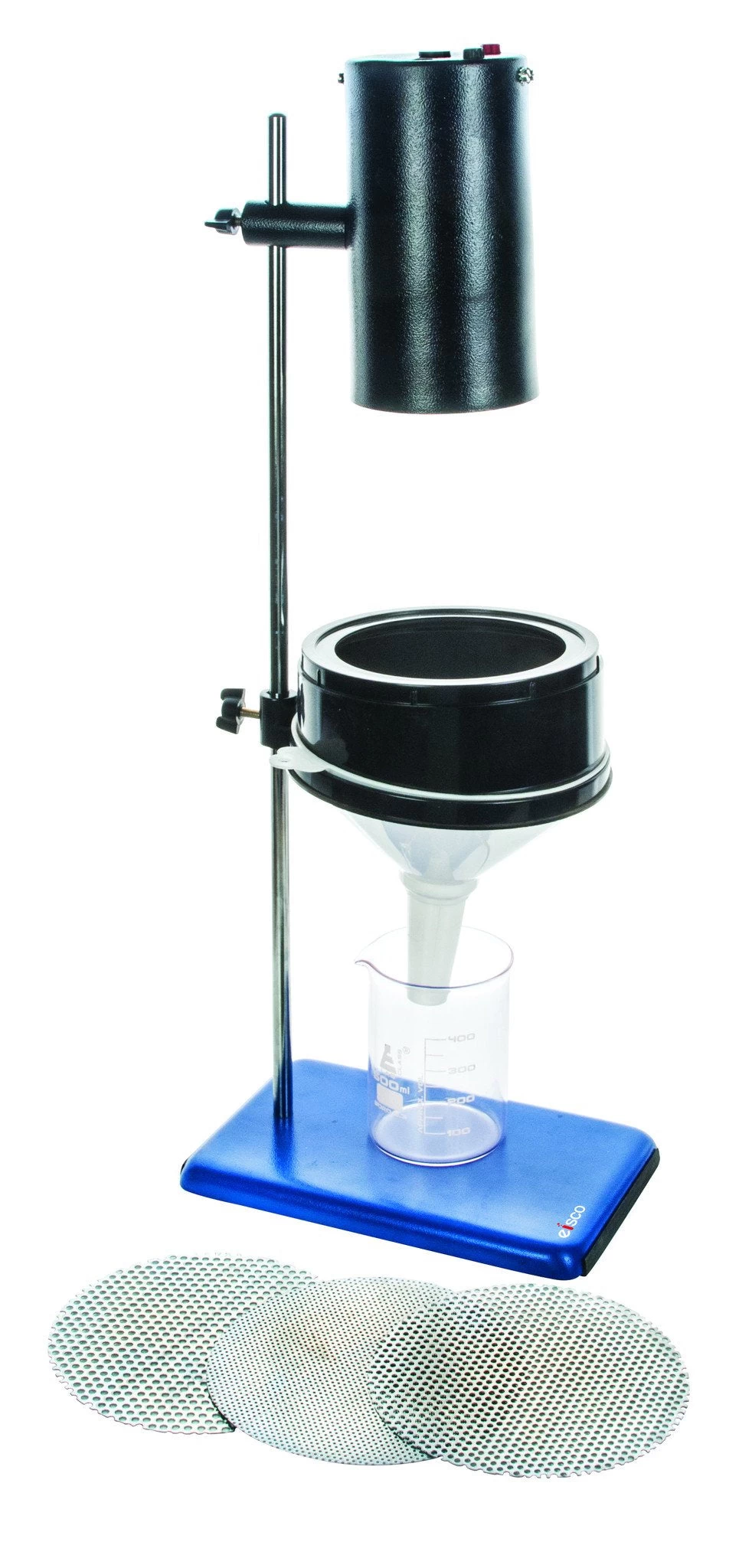 Supplied with coarse and fine mesh, glass collecting beaker and 3 core cable. Supplied without retort stand.