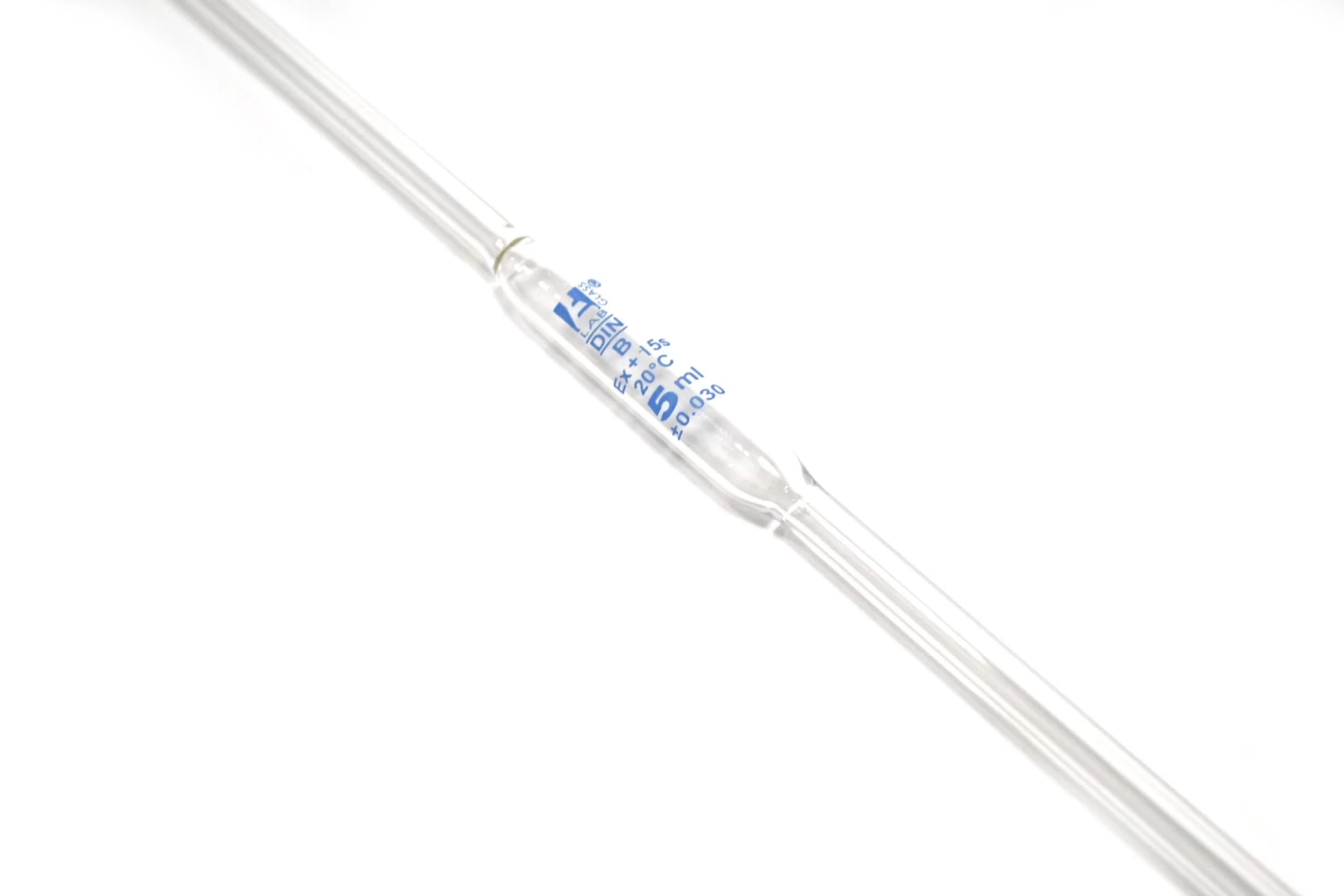 Borosilicate glass, bulb form, with one mark Accuracy as per Class B Colour coded. As per DIN ISO 648 standard. Easy to read blue graduation.