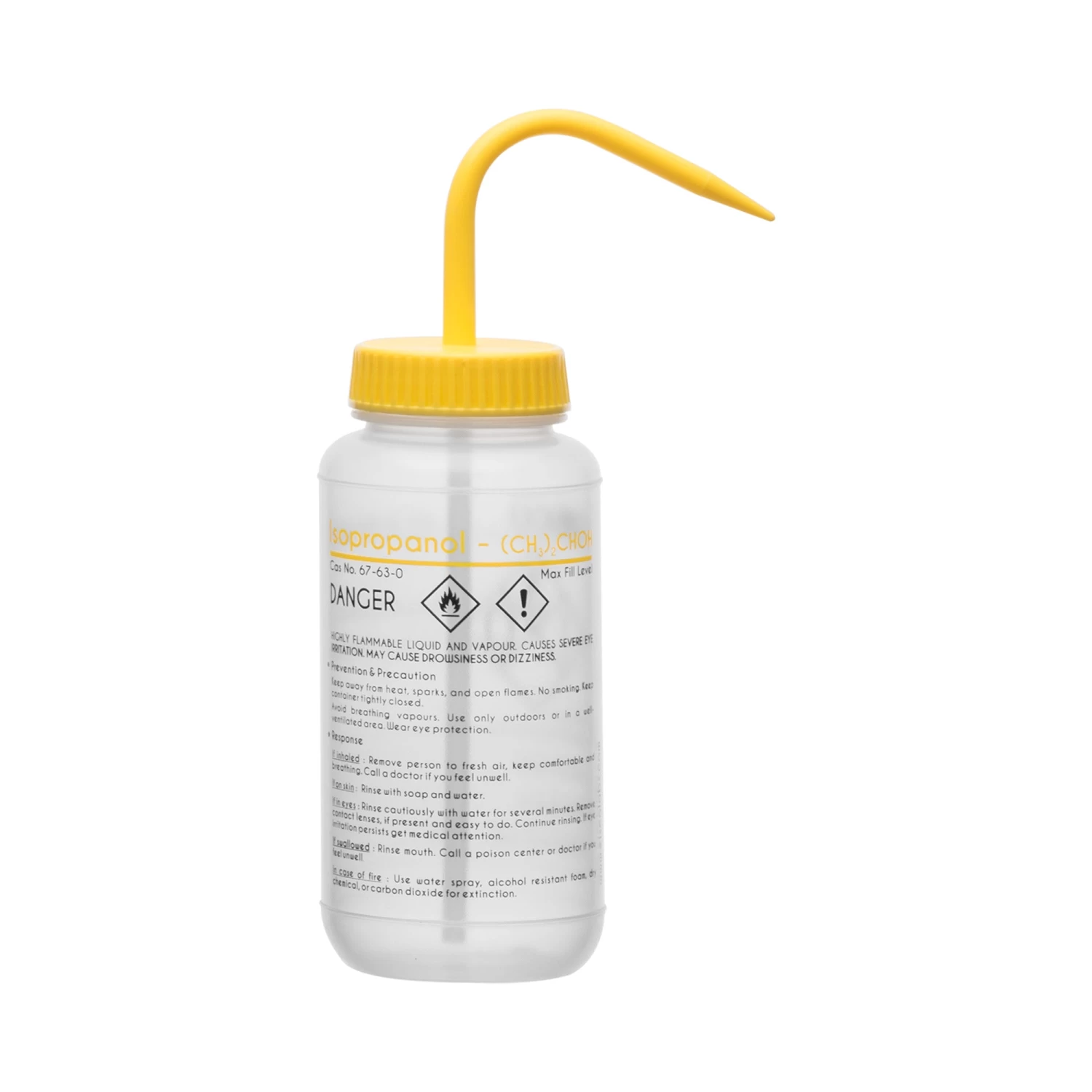 Each empty wash bottle is labeled for Isopropanol and features chemical information as well as hazard, safety, and first aid precautionary statements. Wide mouth for easy refilling. Yellow color coded leak proof cap with built in nozzle included. Self venting design eliminates leaks & dripping. The low density polyethylene plastic is very responsive, with smooth bounce back that won’t get stiff over time. Easy to control squeeze for dispensing.