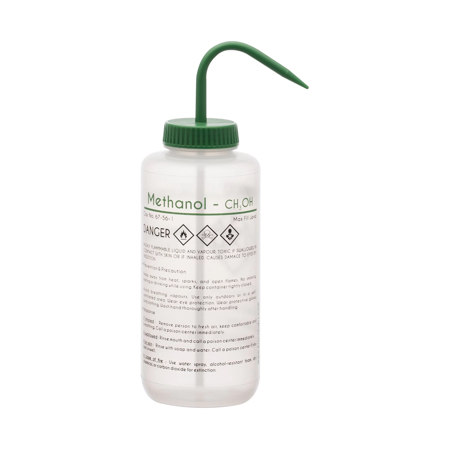 Each bottle is labeled for Methanol featuring chemical information as well as hazard, safety, and first aid precautionary statements. Wide mouth for easy refilling. Green color coded leak proof cap with built in nozzle included. Self venting design eliminates leaks & dripping. The low density polyethylene plastic is very responsive, with smooth bounce back that won’t get stiff over time. Easy to control squeeze for dispensing.