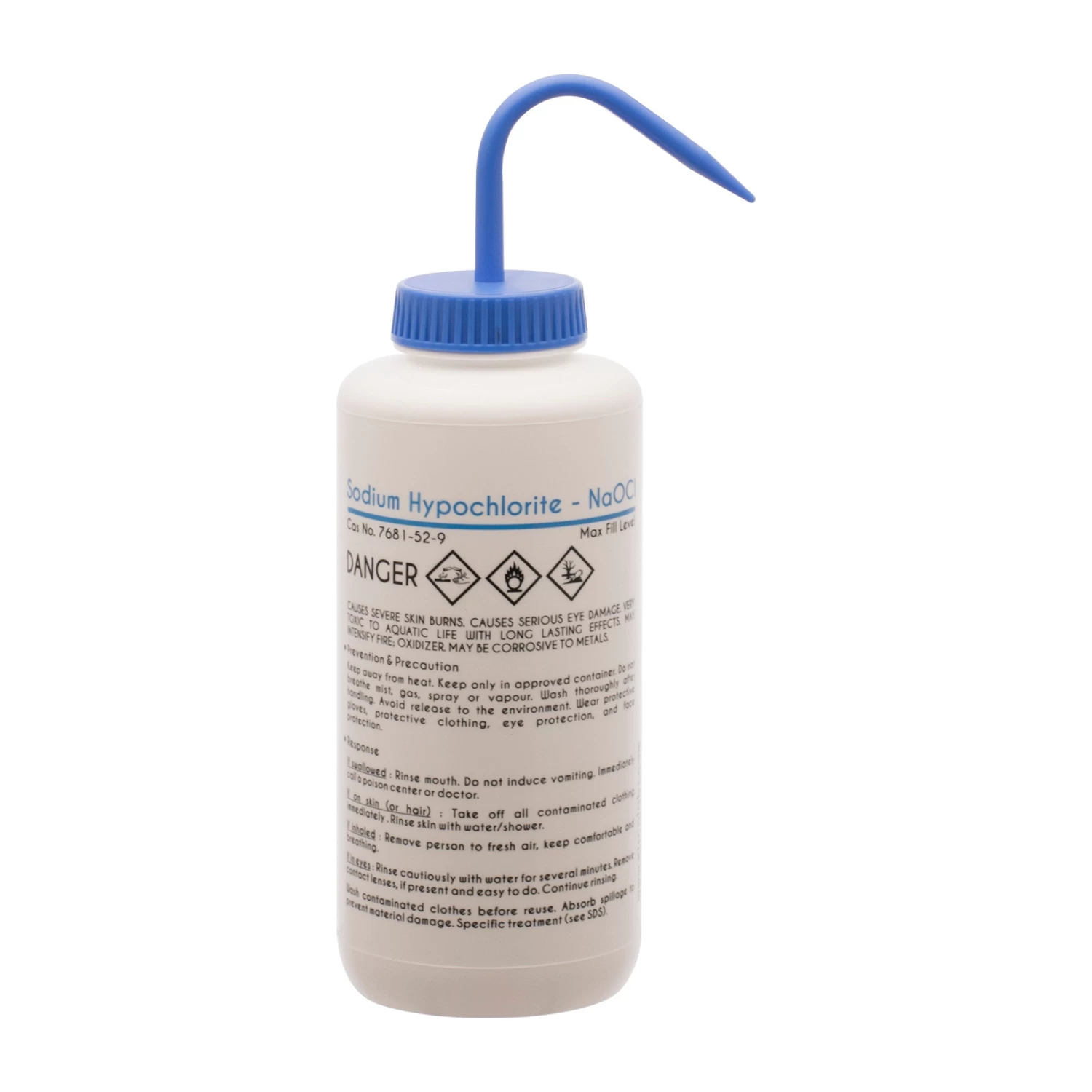 - Sodium Hypochlorite (Bleach) wash bottle, 1000ml capacity